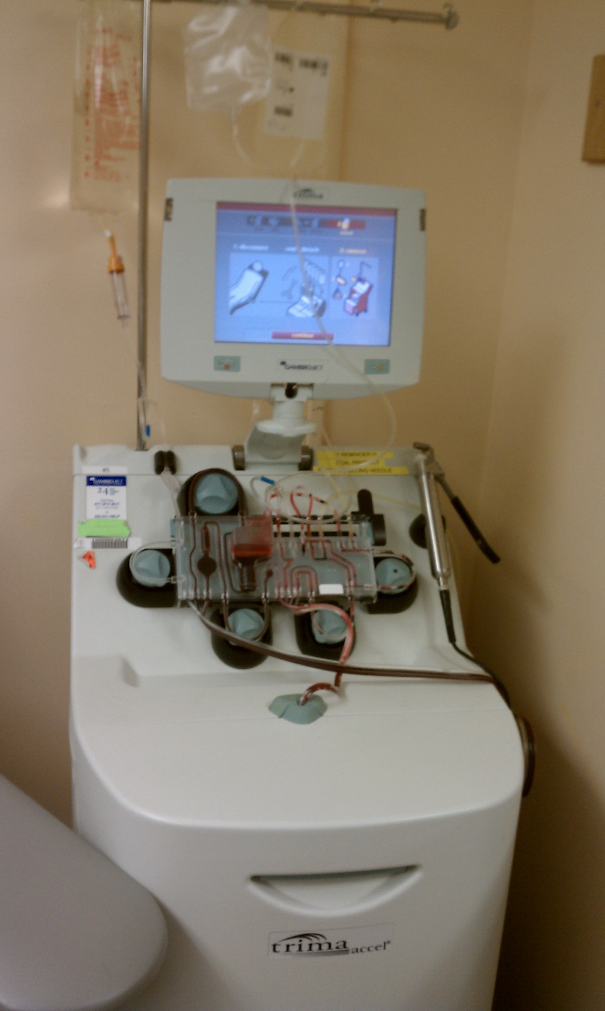 6. The Apheresis machine takes out your blood, centrifuges the platelets out, and then returns whole blood (70-100 mins)